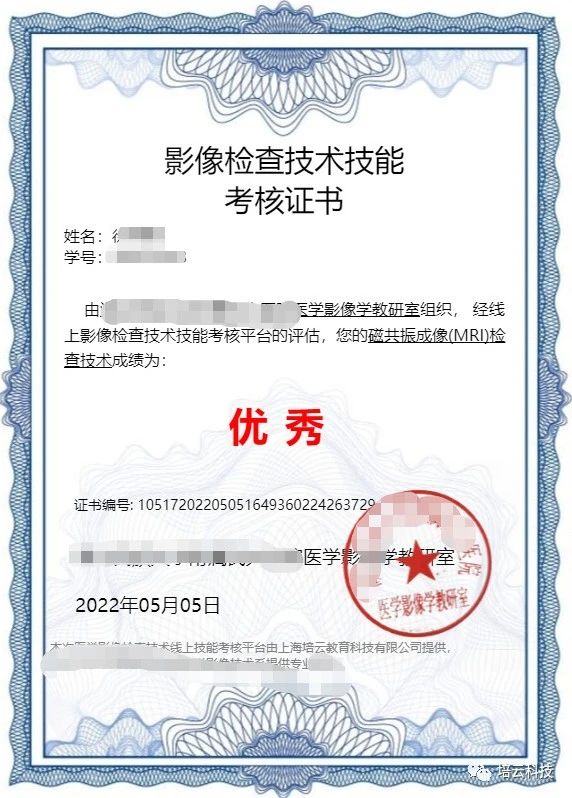 图3 MRI检查技术技能考核证书
