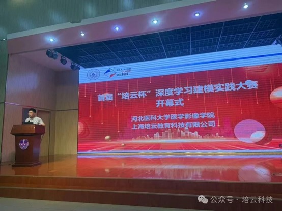 2025年7月11日,河北医科大学建华校区迎来了智能医学影像产业学院夏令营开营仪式暨首届“培云杯”深度学习建模实践大赛开幕式。本次活动由医学影像学院副院长赵松教授主持,学校教务处处长尚丹丹教授、医学影像学院党委书记张鹏教授分别致辞,上海培云教育科技有限公司执行经理夏天博士做了“深度学习建模与创新人才培养”的报告,影像学院相关领导和老师出席了本次活动。来自14个不同专业近300名医学生积极报名参加夏令营。