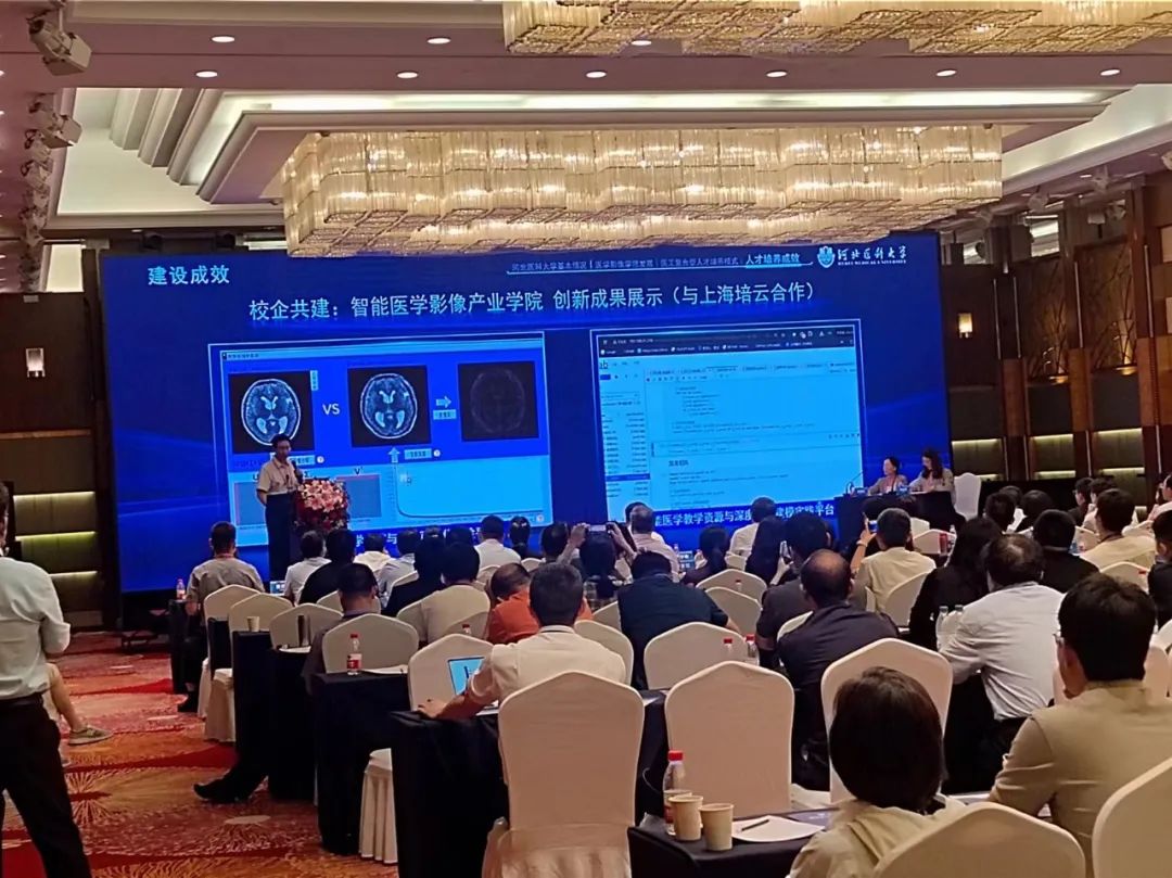 为探讨智能医学工程专业发展方向,提升智能医学工程专业建设水平,由高等教育学会医学教育专业委员会、中国高等教育培训中心主办,河北医科大学、天津医科大学、河北工业大学联合承办的“智能医学工程专业学术研讨会”于5月31-6月2日在石家庄隆重召开。来自全国的41所医科、工科高校、医院的110余人参加本次会议,会议由河北医科大学影像学院党委书记尚丹丹教授主持;培云科技于2023年与该院共建“智能影像产业学院”,作为建设单位,受邀参加了本次会议。培云科技对于本次会议圆满举行,表达由衷的祝贺。