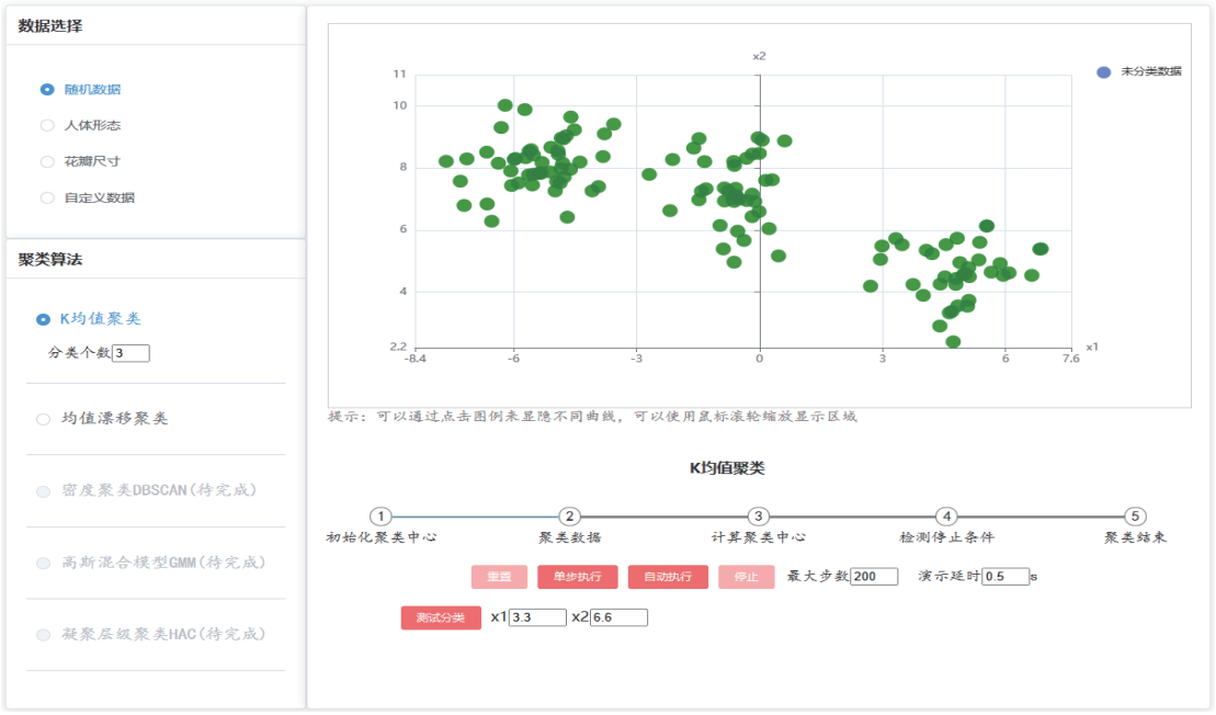 贝叶斯分类器界面 聚类算法界面
